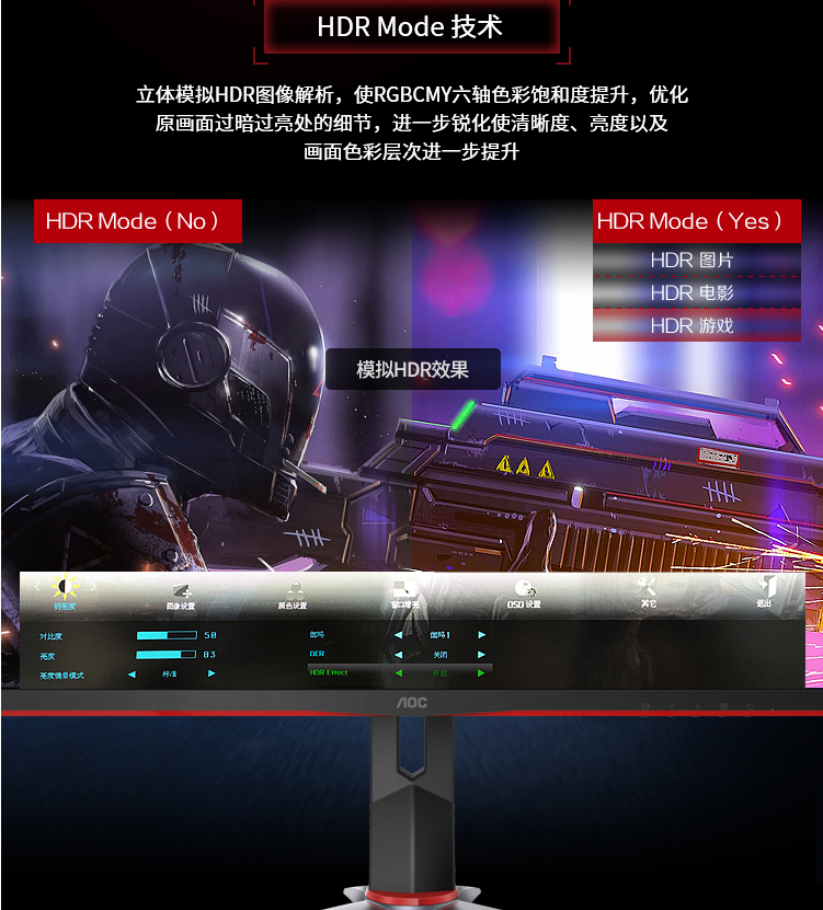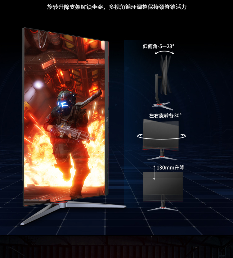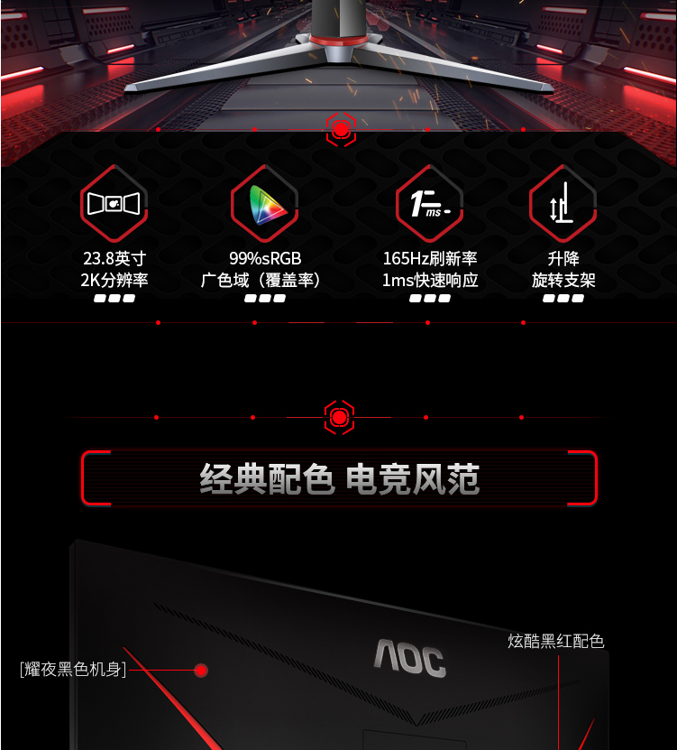 AOCQ24G223.8英寸2K显示器165HZIPS快速液晶1ms广色域旋转升降HDRMode游戏电竞显示屏