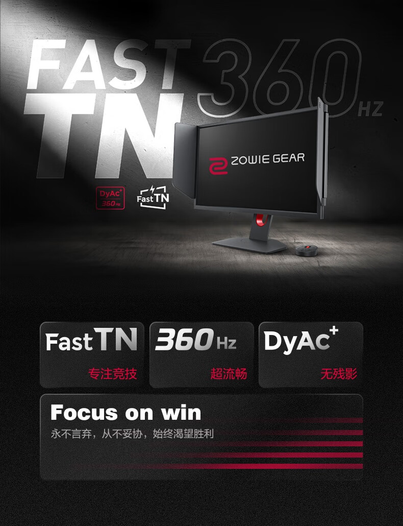 ZOWIE卓威24.5英寸360Hz电竞显示器FastTN游戏显示屏DyAc+技术旋转升降电脑显示器XL2566K