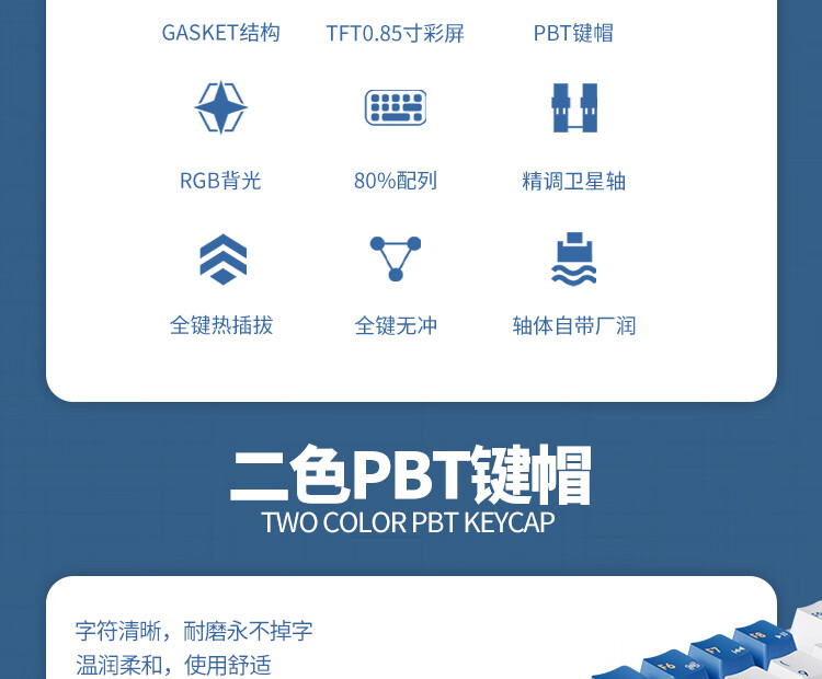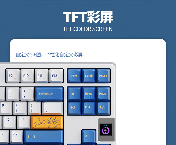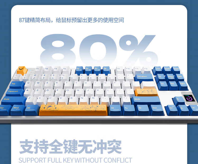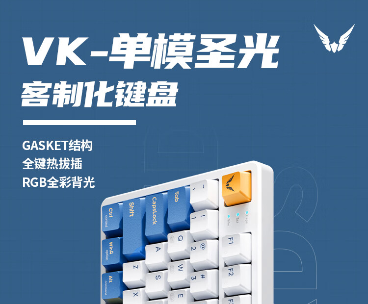 瓦尔基里(VALKYRIE)VK87-圣光单模客制化机械键盘单模有线热插拔gasket结构PBT键帽LCD液晶屏