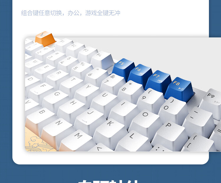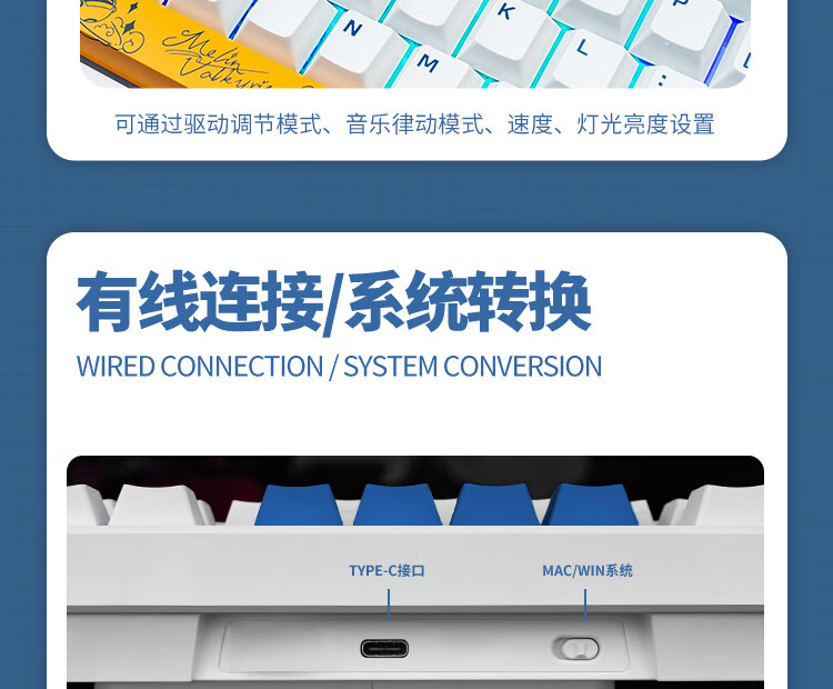 机械革命耀·K330机械键盘有线键盘游戏键盘金属面板104键混彩背光键盘全键无冲电脑键盘蓝白色青轴