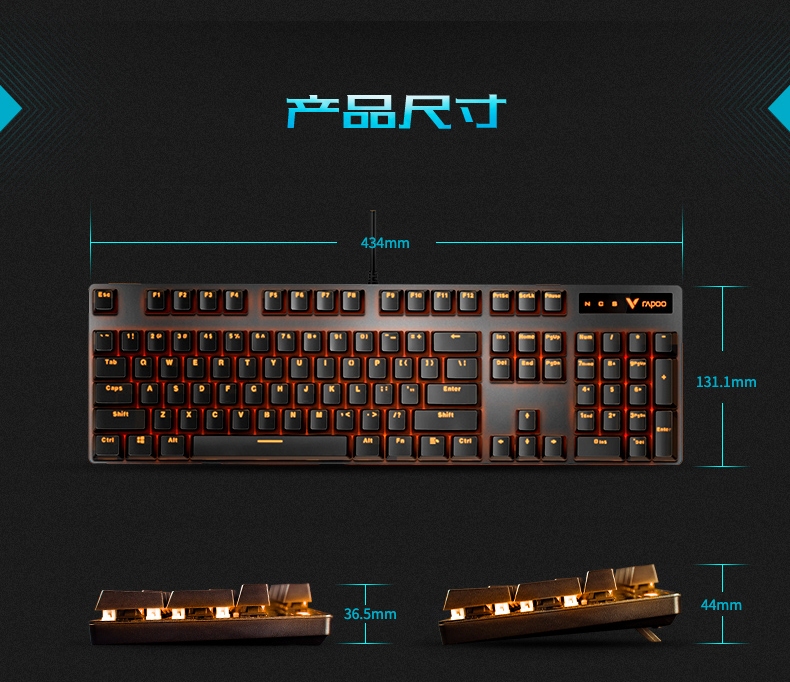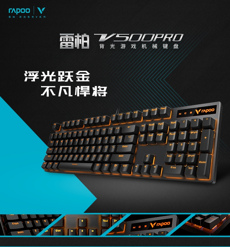 雷柏(Rapoo)V500PRO单光版有线背光机械键盘104键全尺寸游戏电竞笔记本电脑办公吃鸡全键无冲键盘茶轴