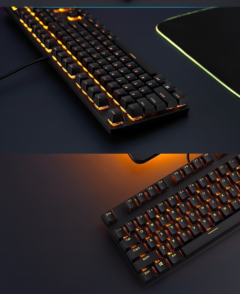 机械革命耀·K330机械键盘有线键盘游戏键盘金属面板104键混彩背光键盘全键无冲电脑键盘蓝白色青轴