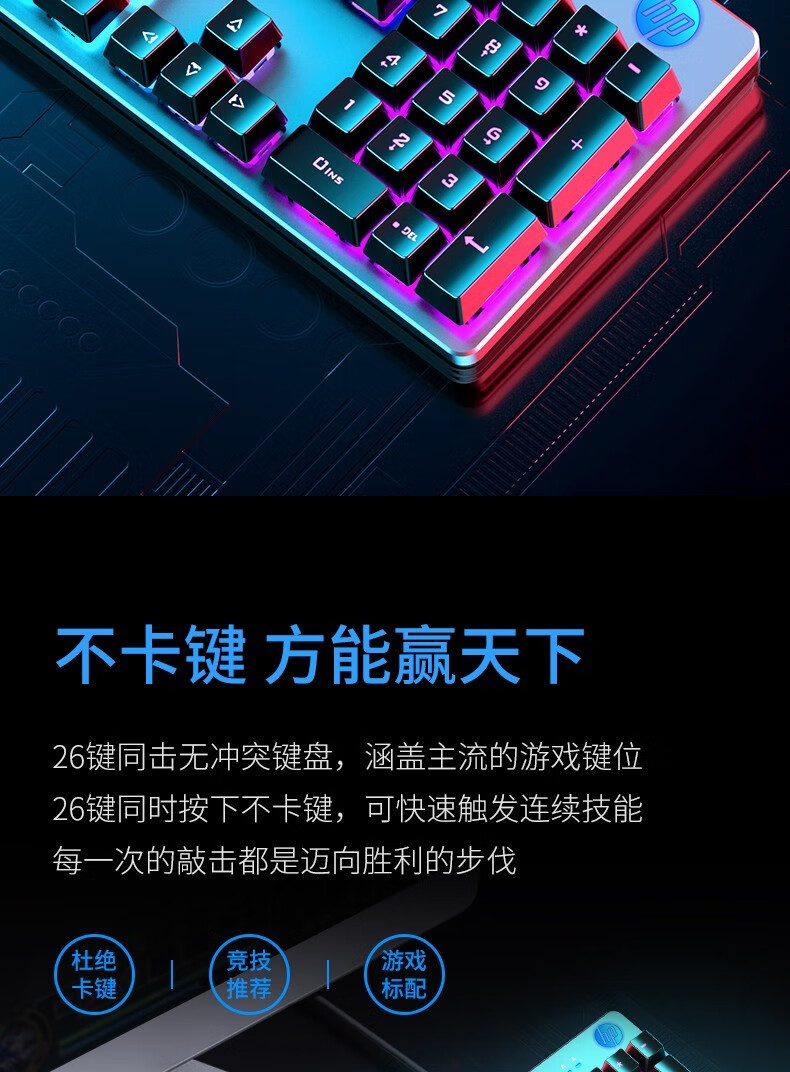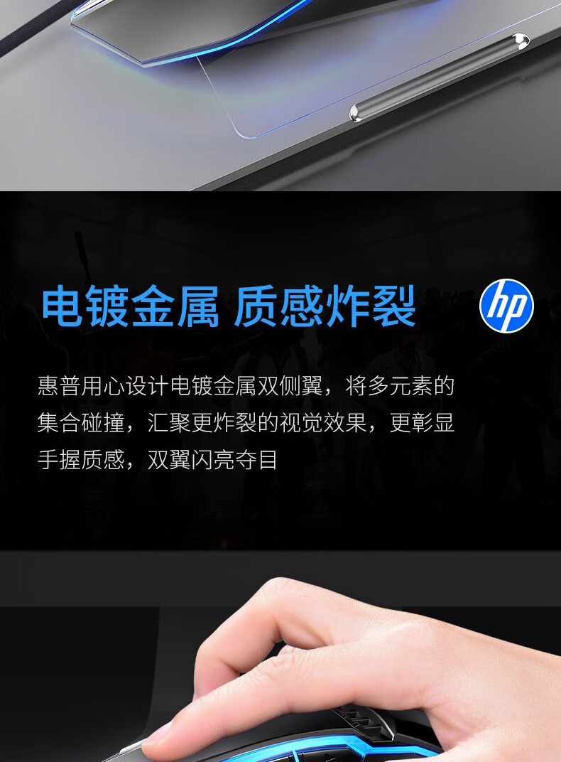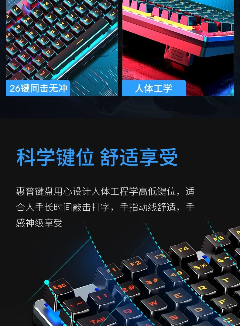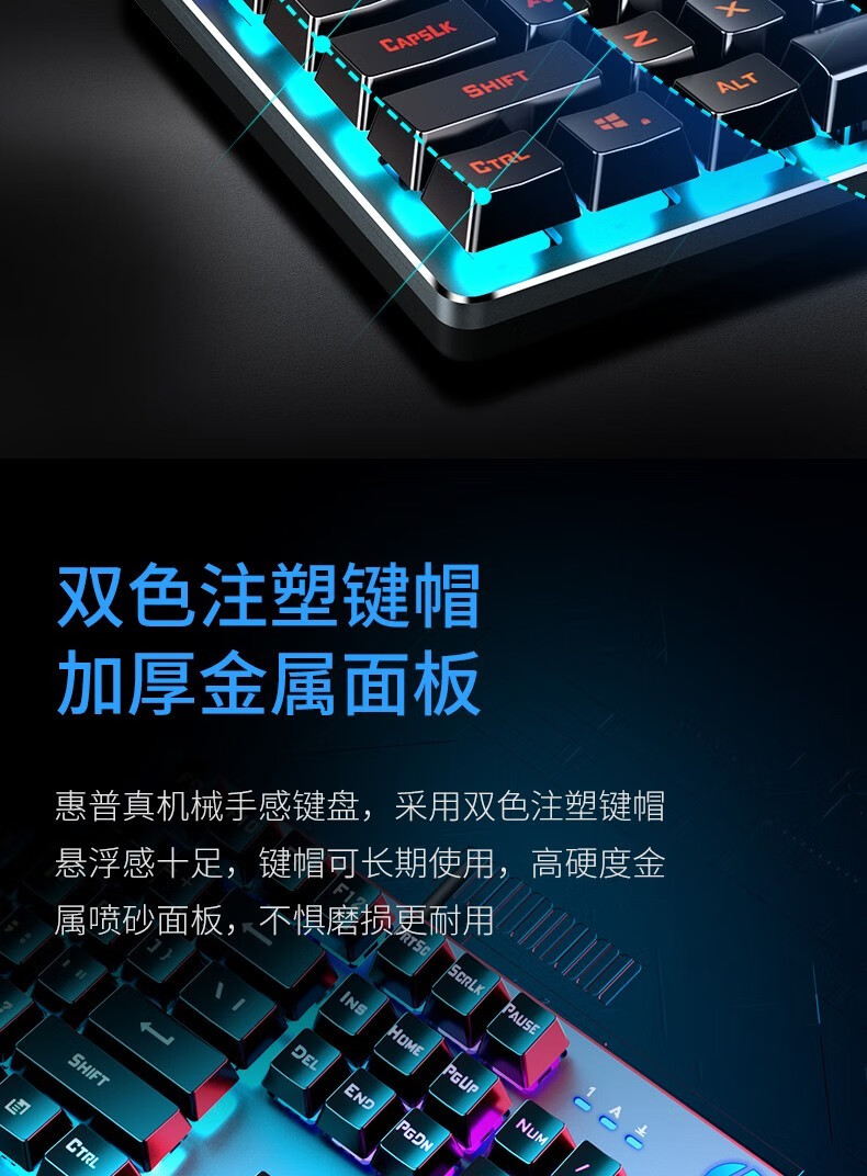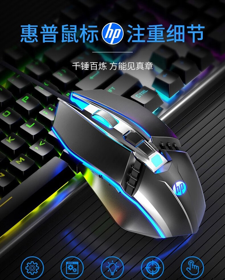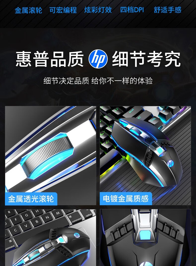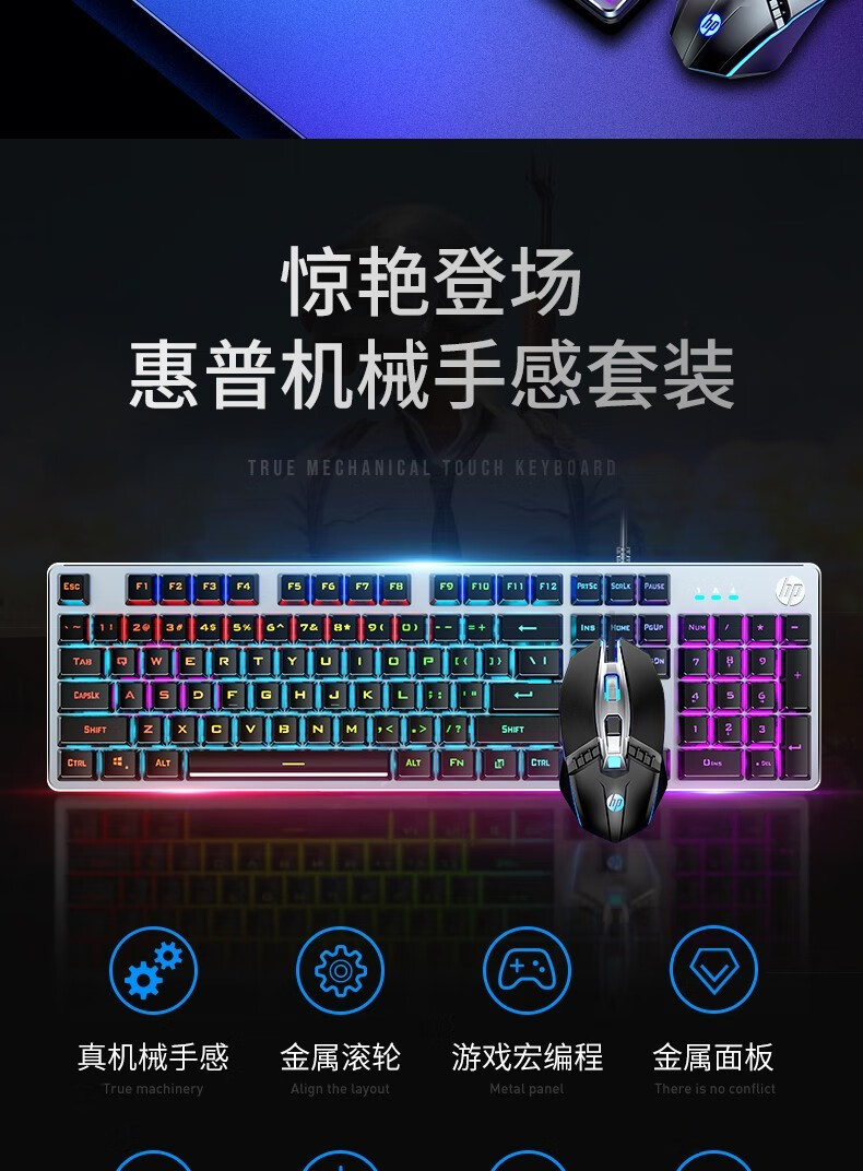 惠普(HP)真机械手感键盘鼠标套装游戏有线背光电竞吃鸡笔记本台式电脑外设办公键鼠朋克网吧三件套黑色彩光【金属面板】