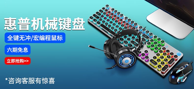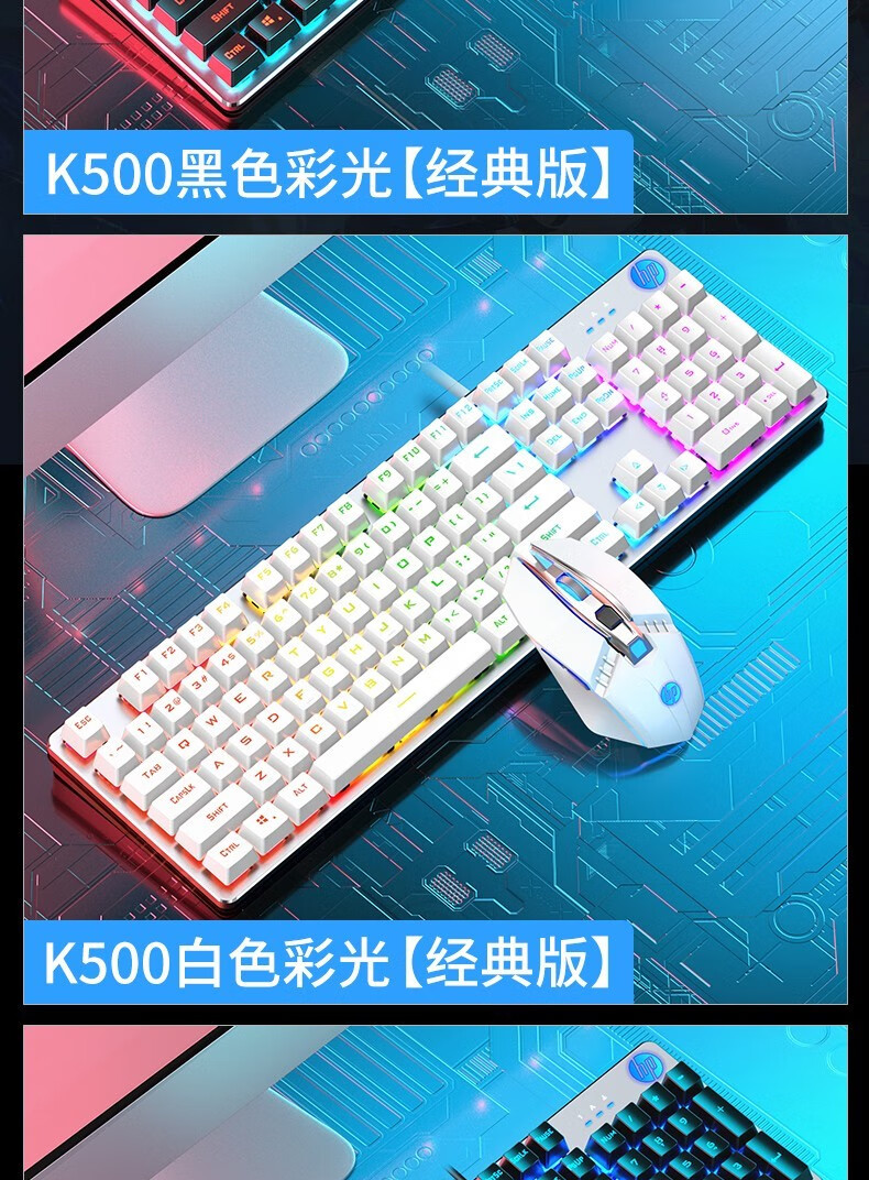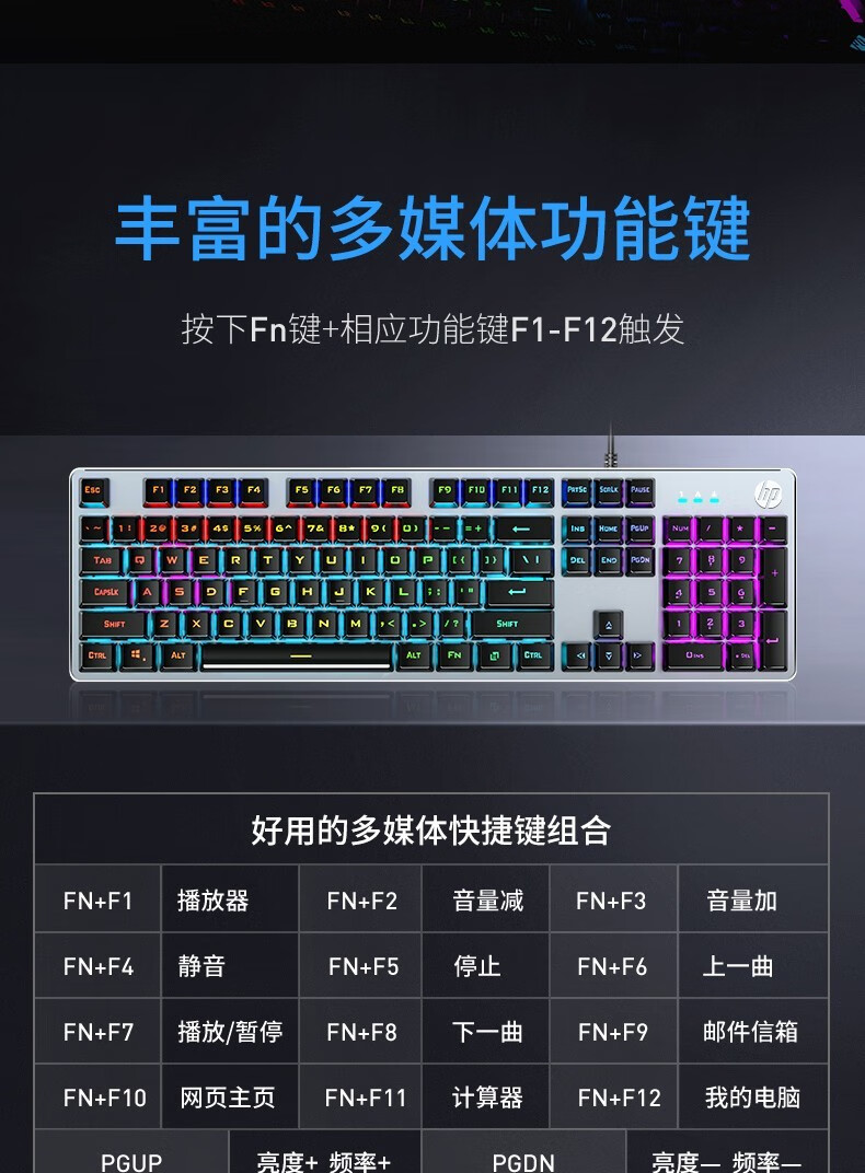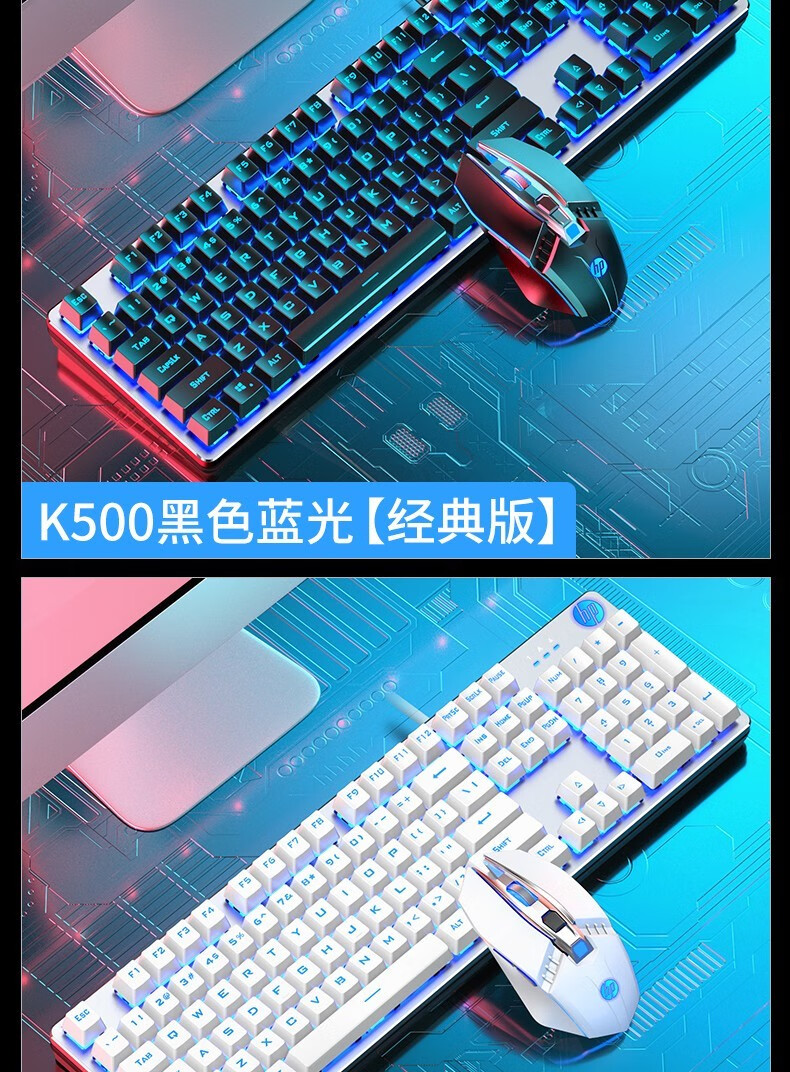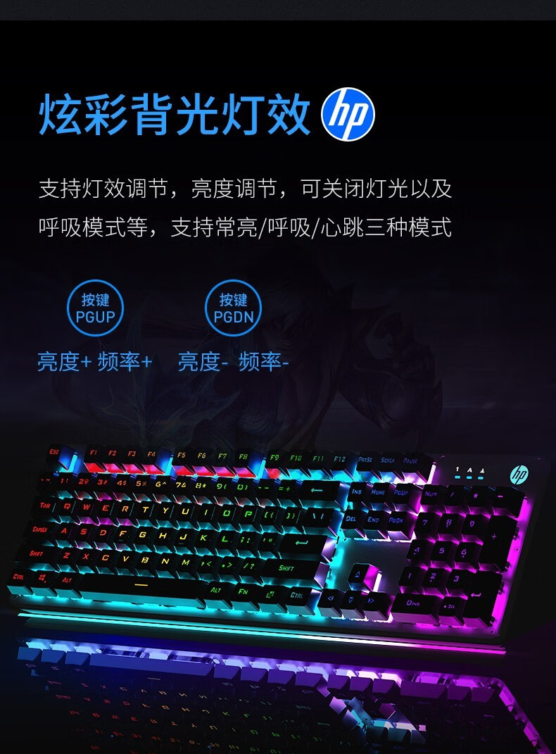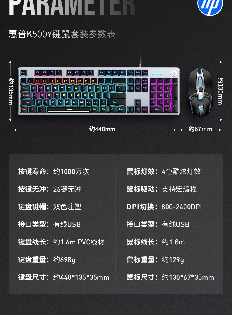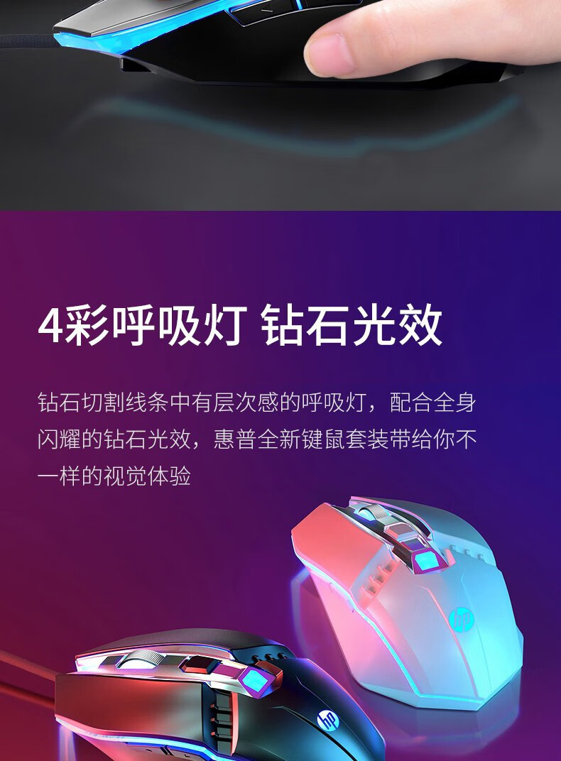 惠普(HP)真机械手感键盘鼠标套装游戏有线背光电竞吃鸡笔记本台式电脑外设办公键鼠朋克网吧三件套黑色彩光【金属面板】