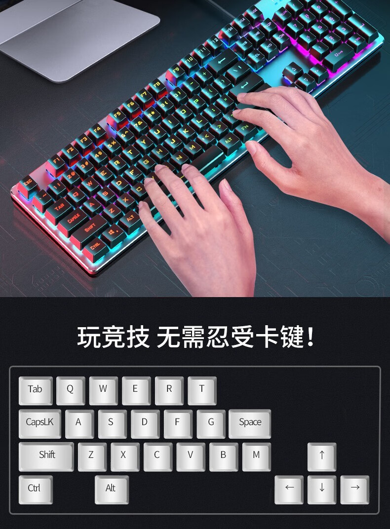 机械革命耀·K330机械键盘有线键盘游戏键盘金属面板104键混彩背光键盘全键无冲电脑键盘蓝白色青轴