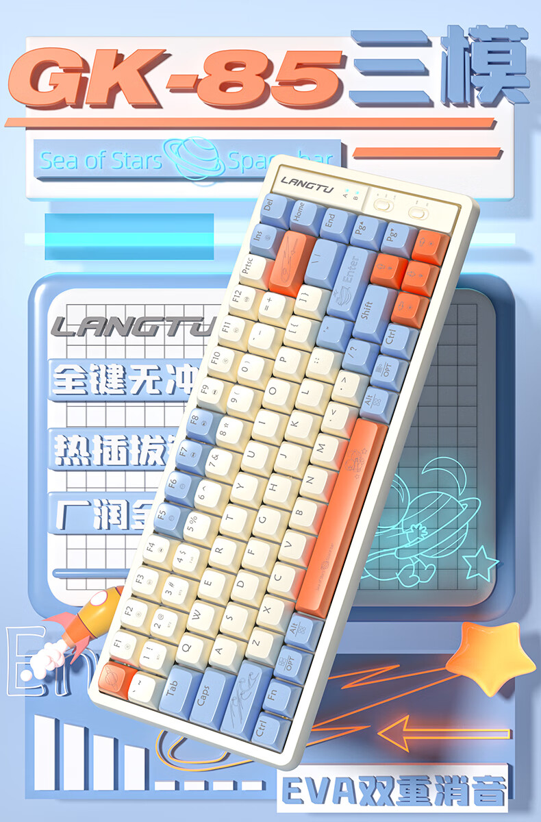 狼途(LANGTU)GK85星海三模热插拔游戏机械键盘有线无线蓝牙游戏办公键盘金轴