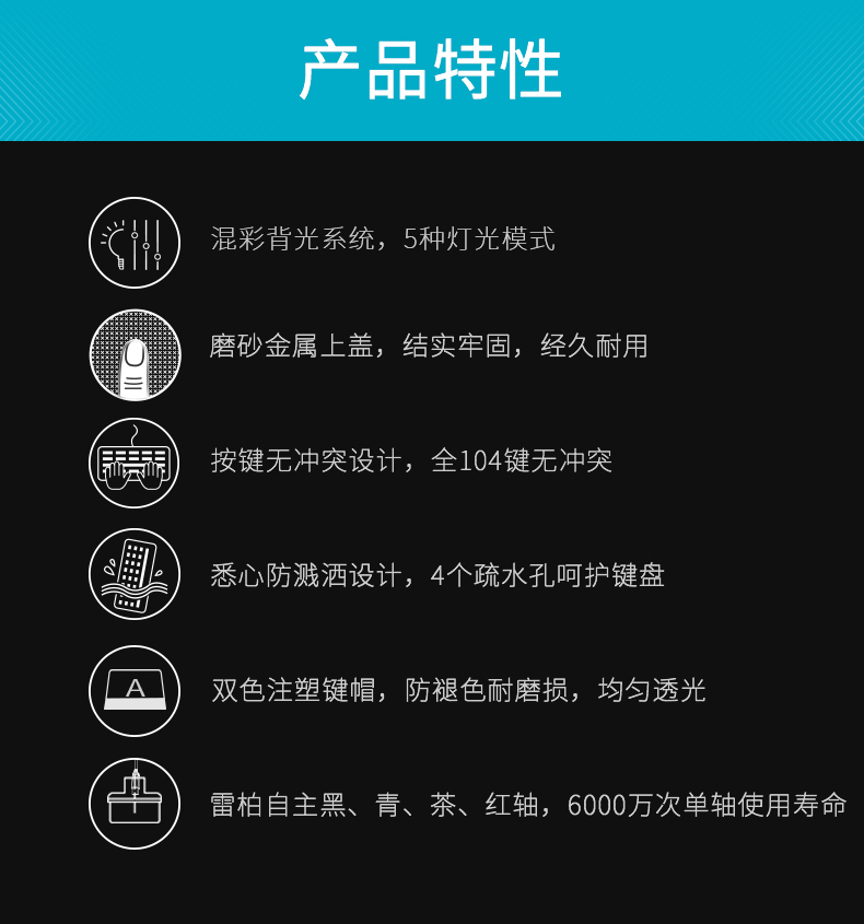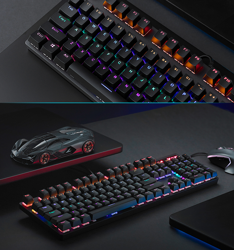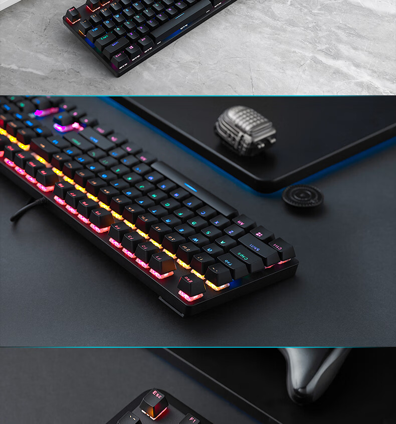 机械革命耀·K330机械键盘有线键盘游戏键盘金属面板104键混彩背光键盘全键无冲电脑键盘蓝白色青轴