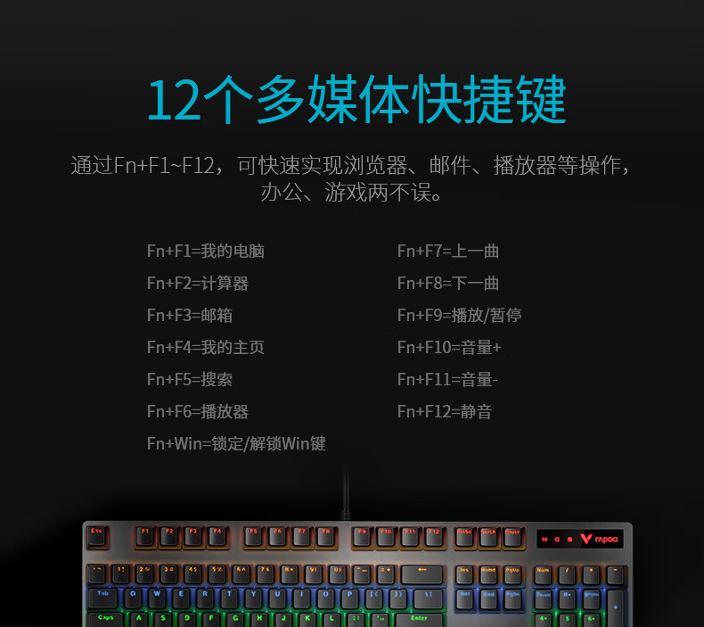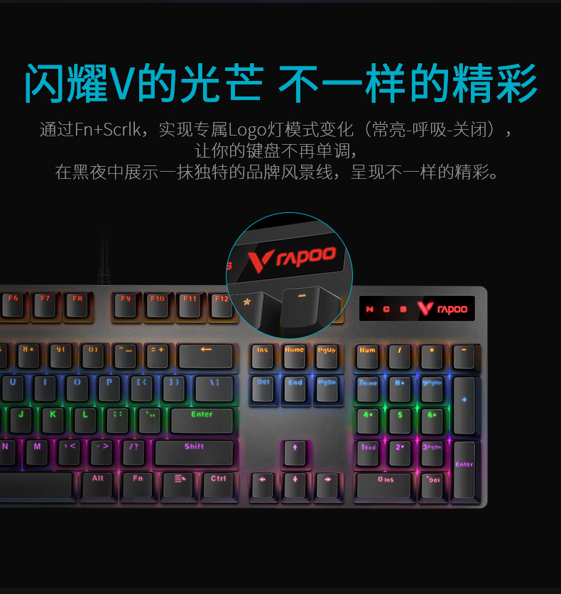 京品数码雷柏(Rapoo)V500PRO有线背光机械键盘104键全尺寸游戏电竞笔记本电脑多媒体办公吃鸡全键无冲键盘黑轴