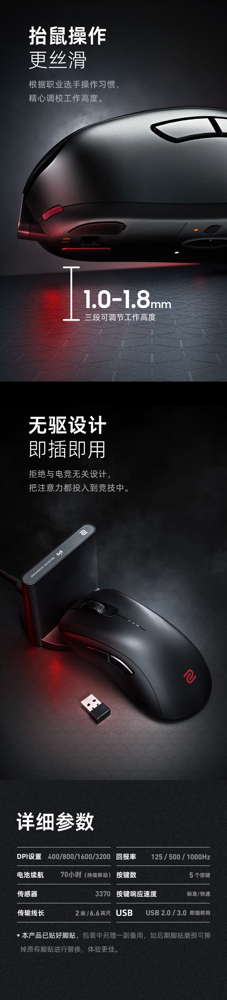 ZOWIE卓威EC2-CW无线鼠标游戏鼠标CSGO吃鸡lol电竞鼠标人体工学设计黑色即插即用