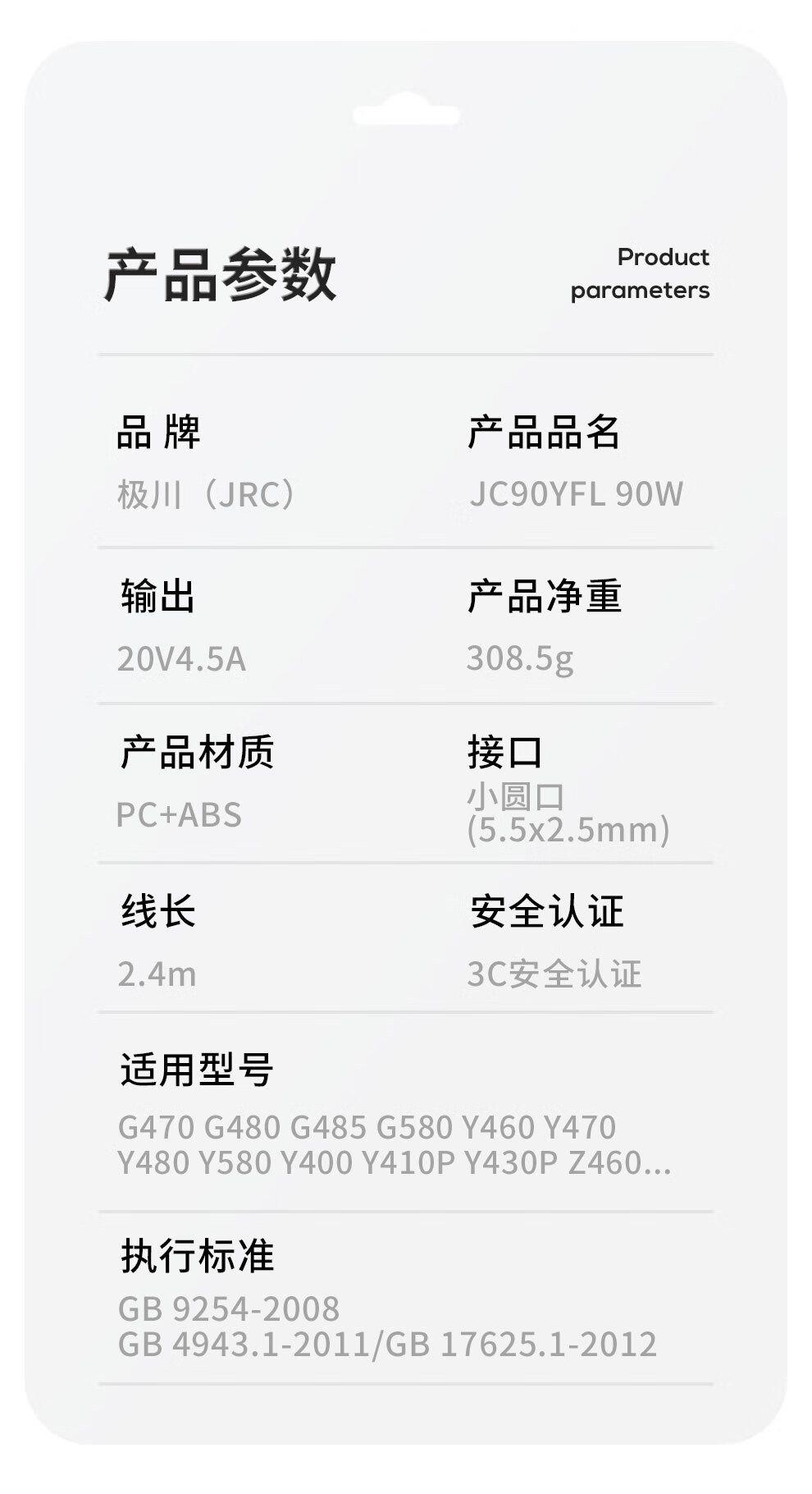 极川联想笔记本电脑充电器90W圆口电源适配器线20V4.5A适用G470G480Z480E49G485Y470Y480Y580