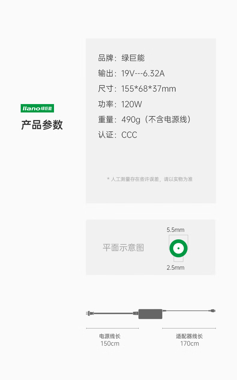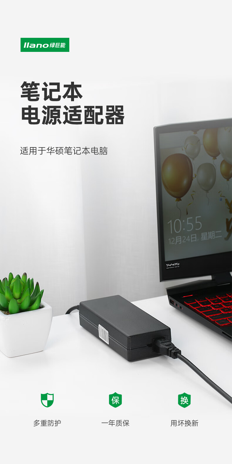 绿巨能(llano)华硕飞行堡垒充电器19V6.32A120W笔记本电脑电源适配器线X550JK550JW50JFX60VN56V