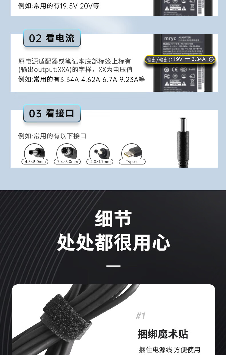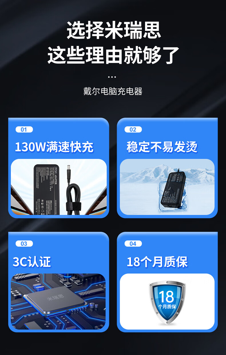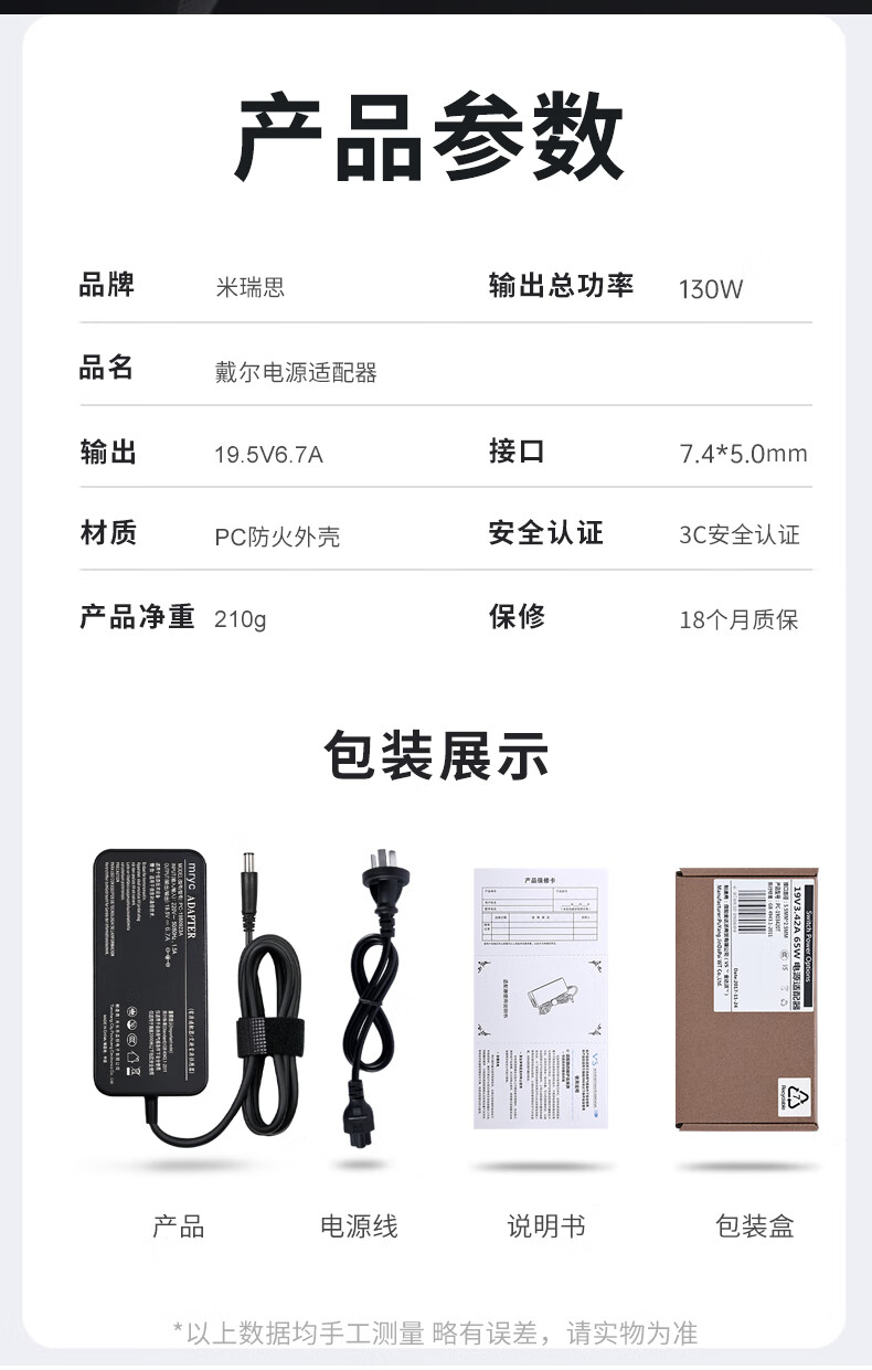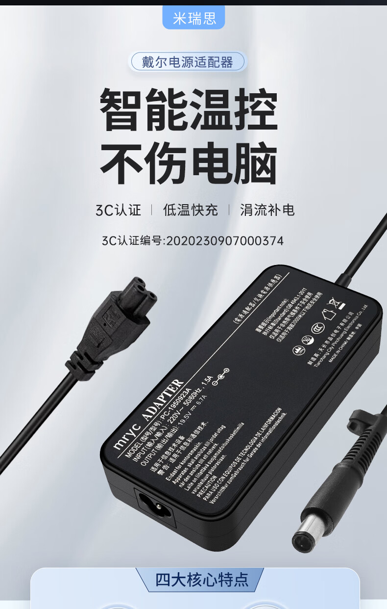 米瑞思(mryc)戴尔笔记本充电器19.5V6.7A130W适用DellG3游匣75577559外星人电脑电源适配器线7.4mm大口带针