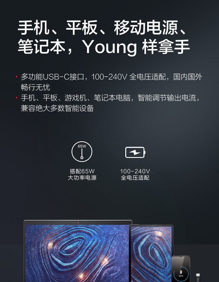 ThinkPad联想thinkplus口红电源65Wtype-c充电器,无充电线ThinkPad/联想笔记本电脑/手机/平板电源适配器