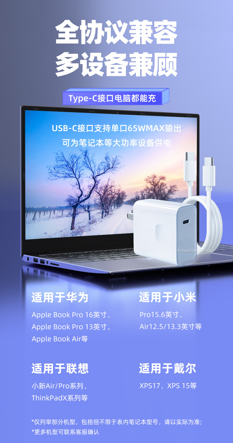 适用惠普笔记本电脑65W便携充电器头战663代4代5代三四五代ProG1/G3A4G4快充EliteBook电源适配器2米套装
