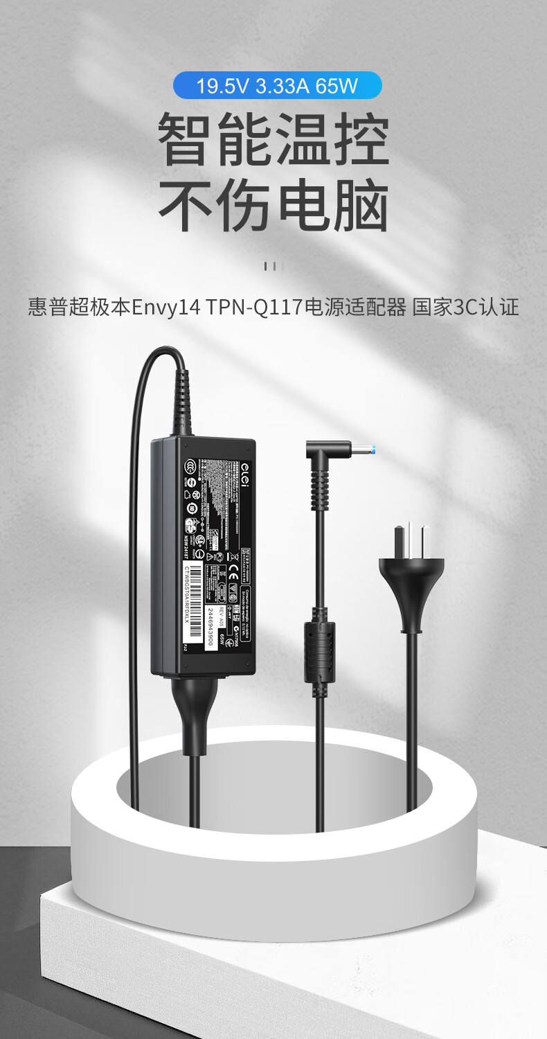 e磊HP惠普超极本电源适配器Pavilion15/M4Envy14TPN-Q117笔记本充电器19.5V3.33A65W蓝口带针